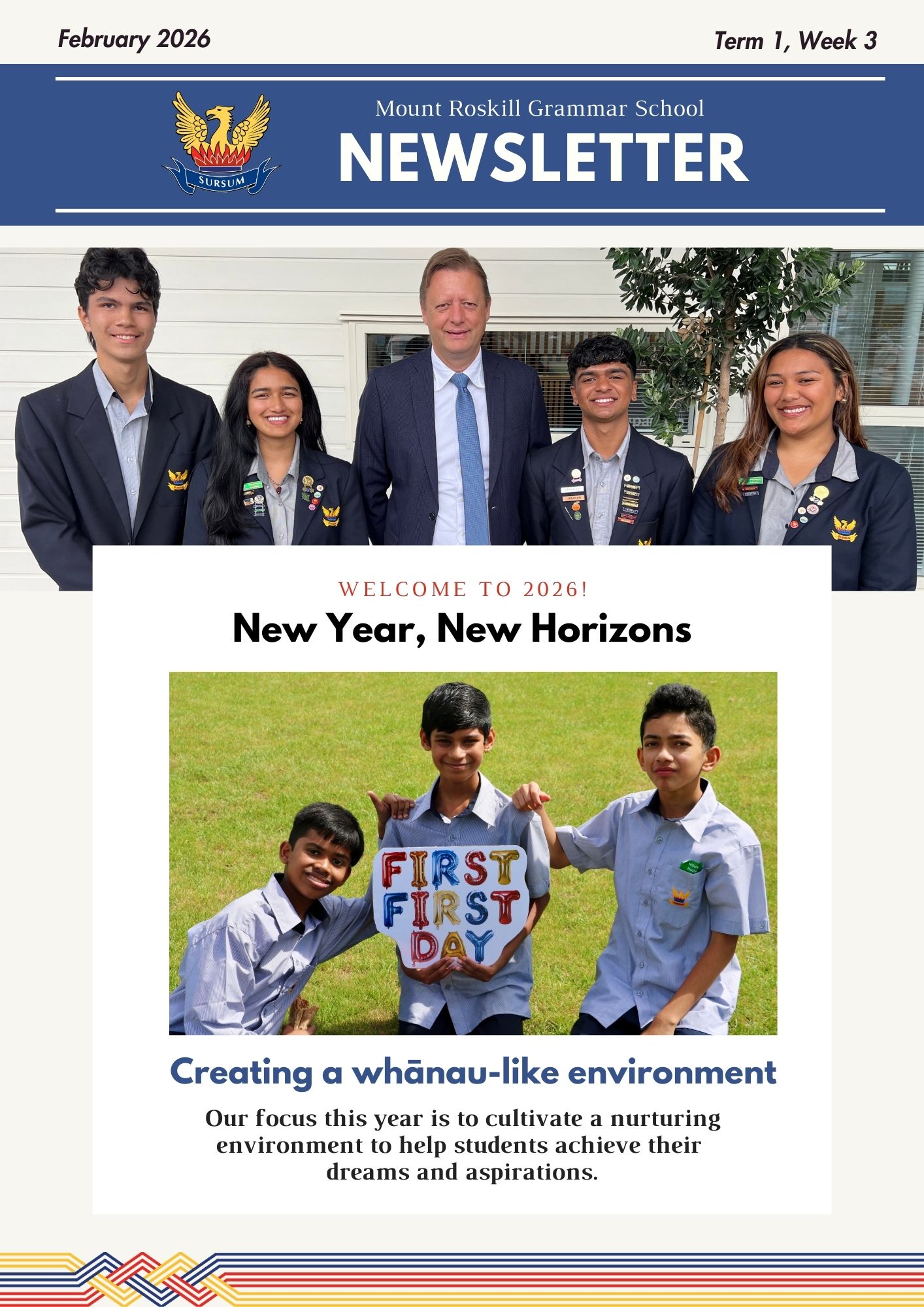Creating a whānau-like environment – Our focus this year is to cultivate a nurturing environment to help students achieve their dreams and aspirations.