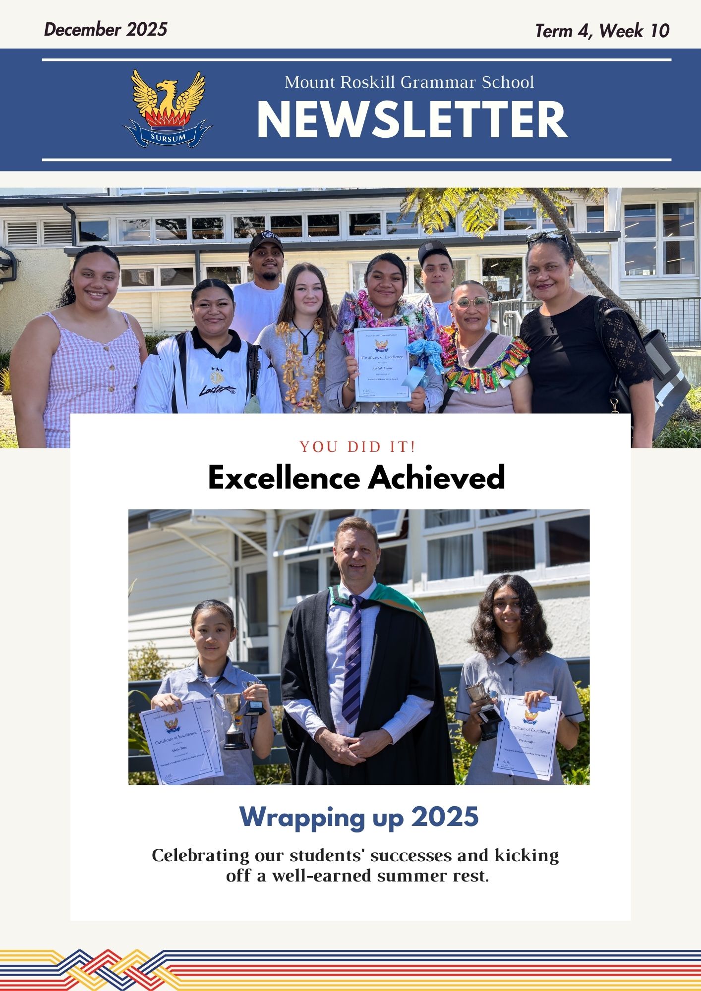 Launch your best effort; seize your future. A big cheer for our students! – As our senior students prepare for their next steps, we want to recognize the hard work and commitment they showed this year, with their friends and whānau. 2025 Term 4, Week 2 Newsletter